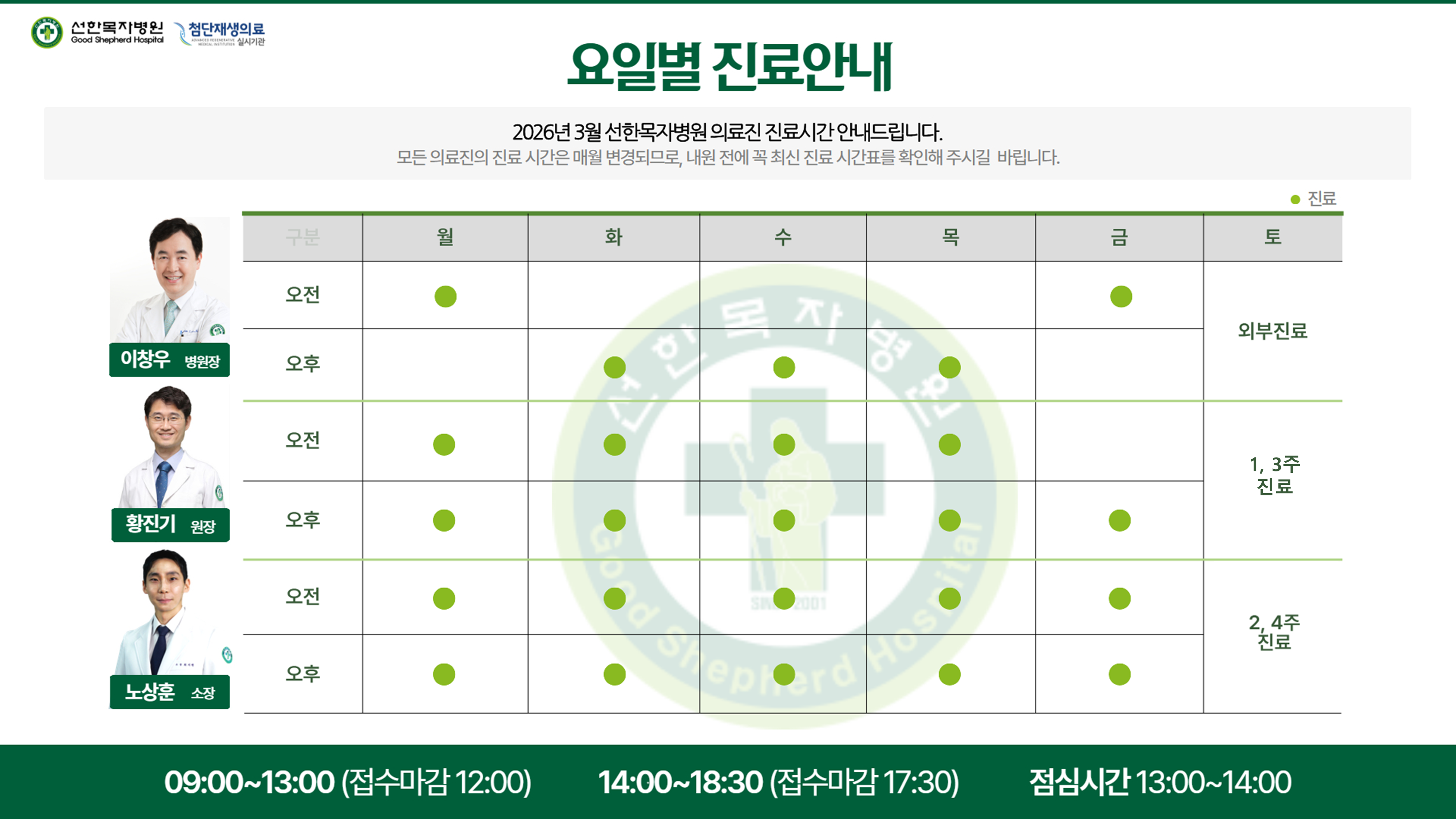 2026년 2월 요일별 진료 시간을 안내해 드립니다.