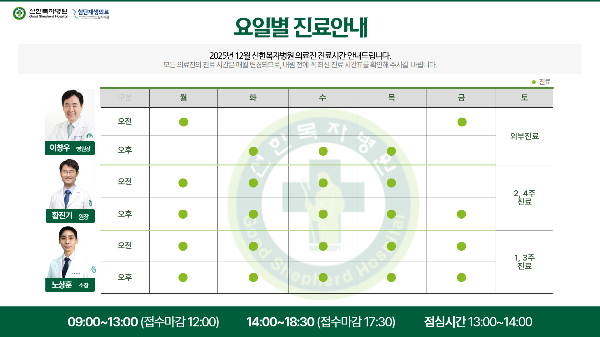 12월 의료진 요일별 진료 시간을 안내해 드립니다.